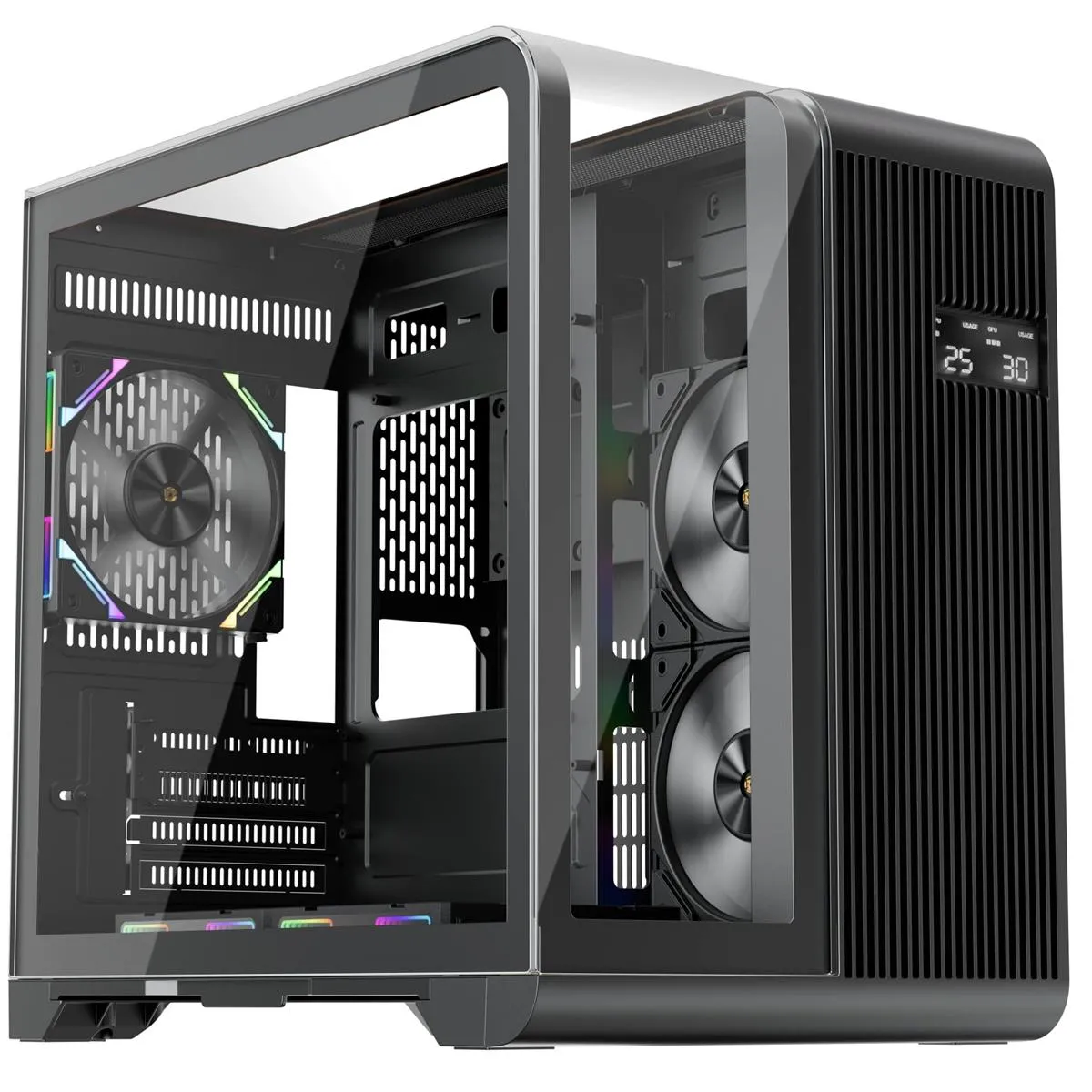 1stPlayer RT5 Black підтримує установку до шести вентиляторів для максимальної вентиляції, що суттєво покращує охолодження компонентів. Беручи до уваги можливість встановлення систем рідинного охолодження, цей корпус стає ще привабливішим для високопродуктивних систем.